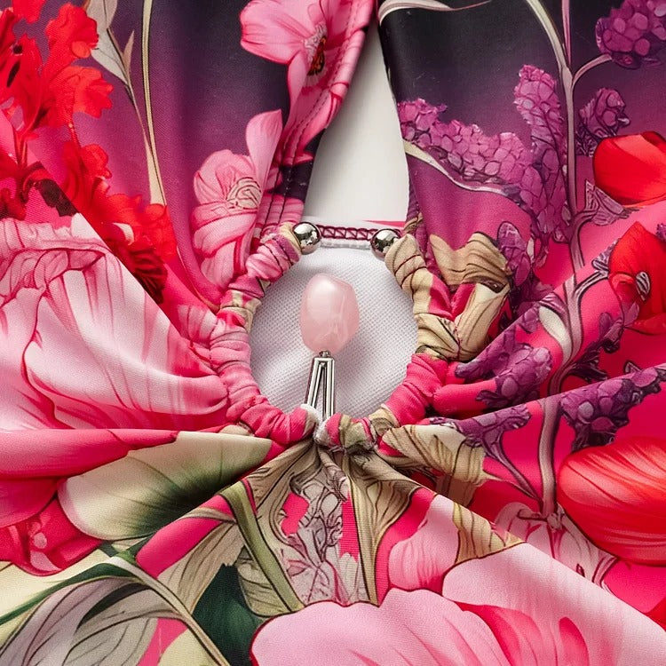 Deep V Neck Halter Printed One Piece Swimsuit and Sarong