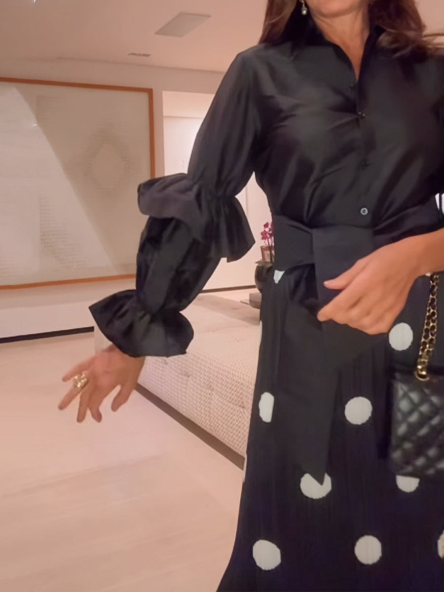 Elegant Polka Dot Flare Sleeve Dress