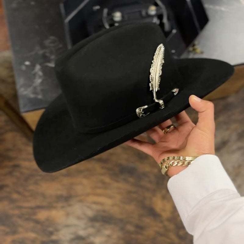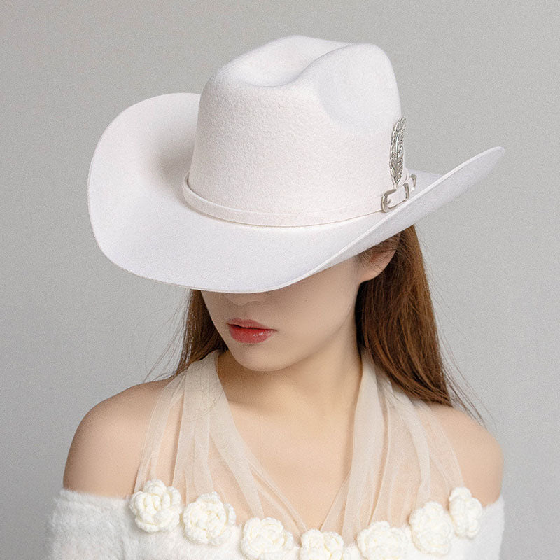 Fashion Metal Leaf Decoration Wool Felt Hat