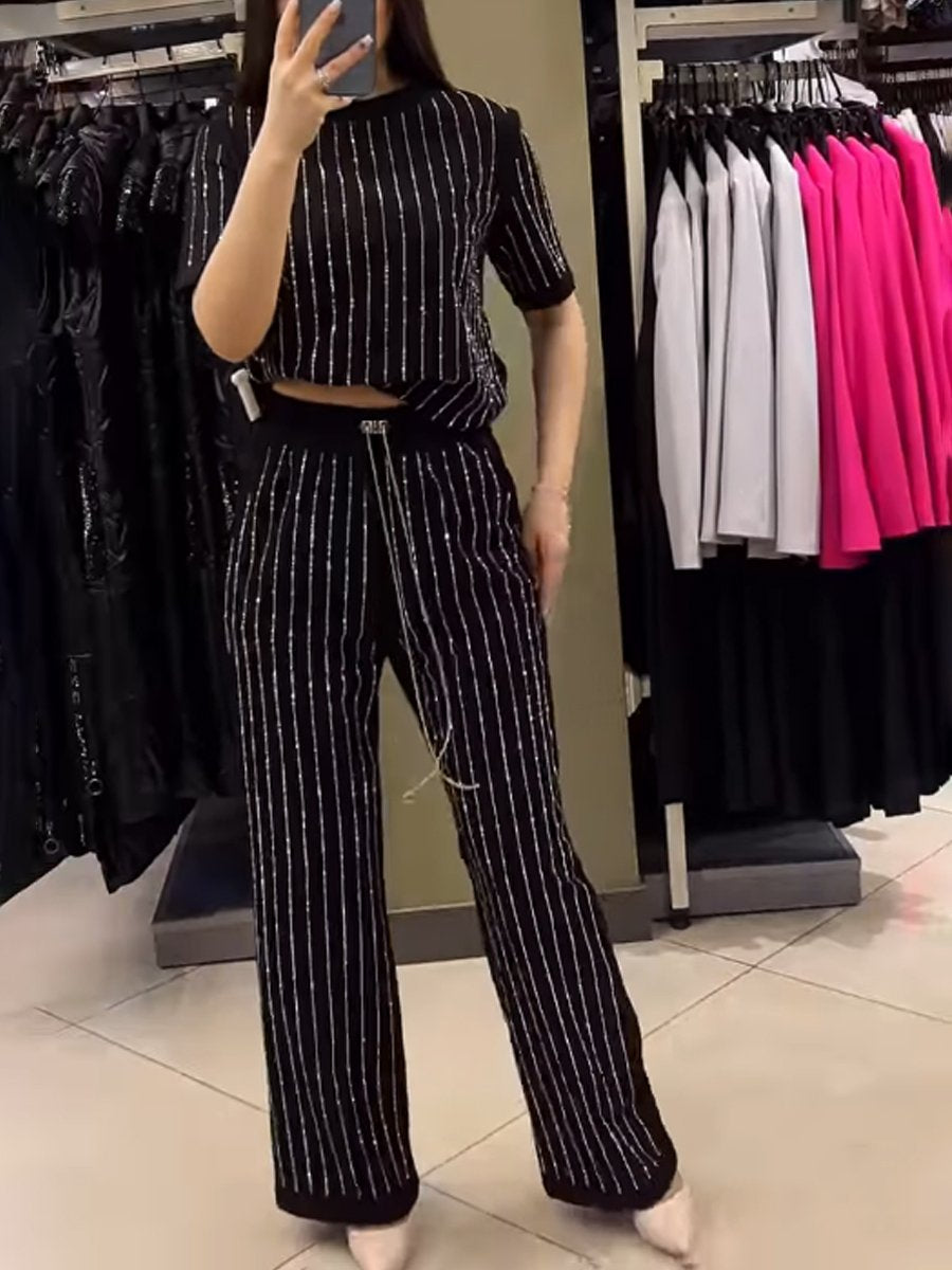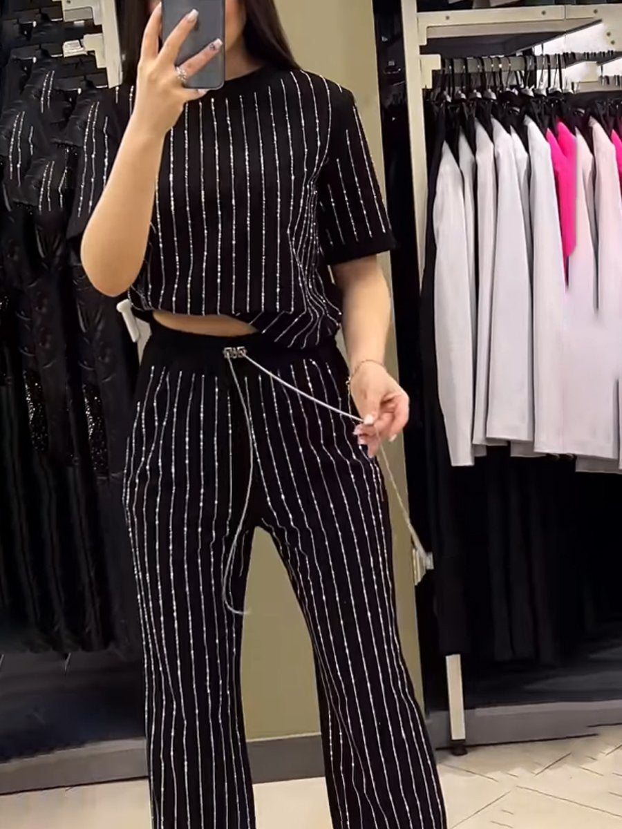 Unleash your fearless, glam side with our Hot Drilling Short Sleeve Two Piece Set! Perfect for those who love to take risks, this set features a bold and confident style. The hot drilling adds an edgy touch, while the short sleeves keep you cool and stylish. Dare to be different and stand out from the crowd!