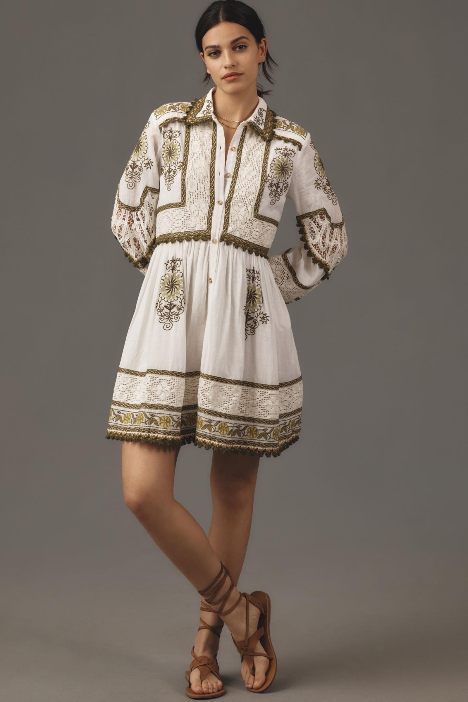 Maeve Long-Sleeve Embroidered Boho Mini Dress