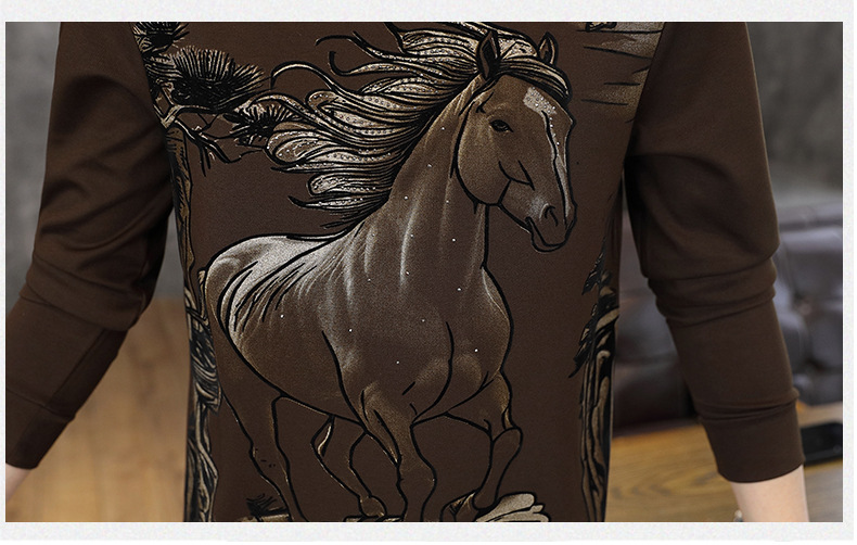 Men's sparkling diamond galloping horse casual long sleeved T-shirt