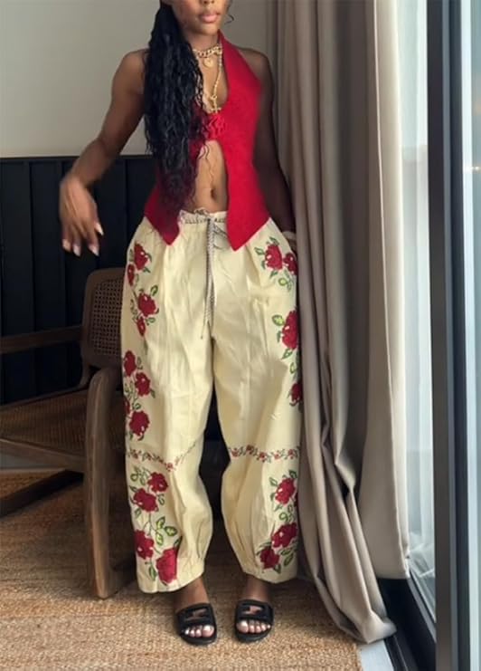 Mid Waist Bucket Style Embroidered Wide Leg Jeans