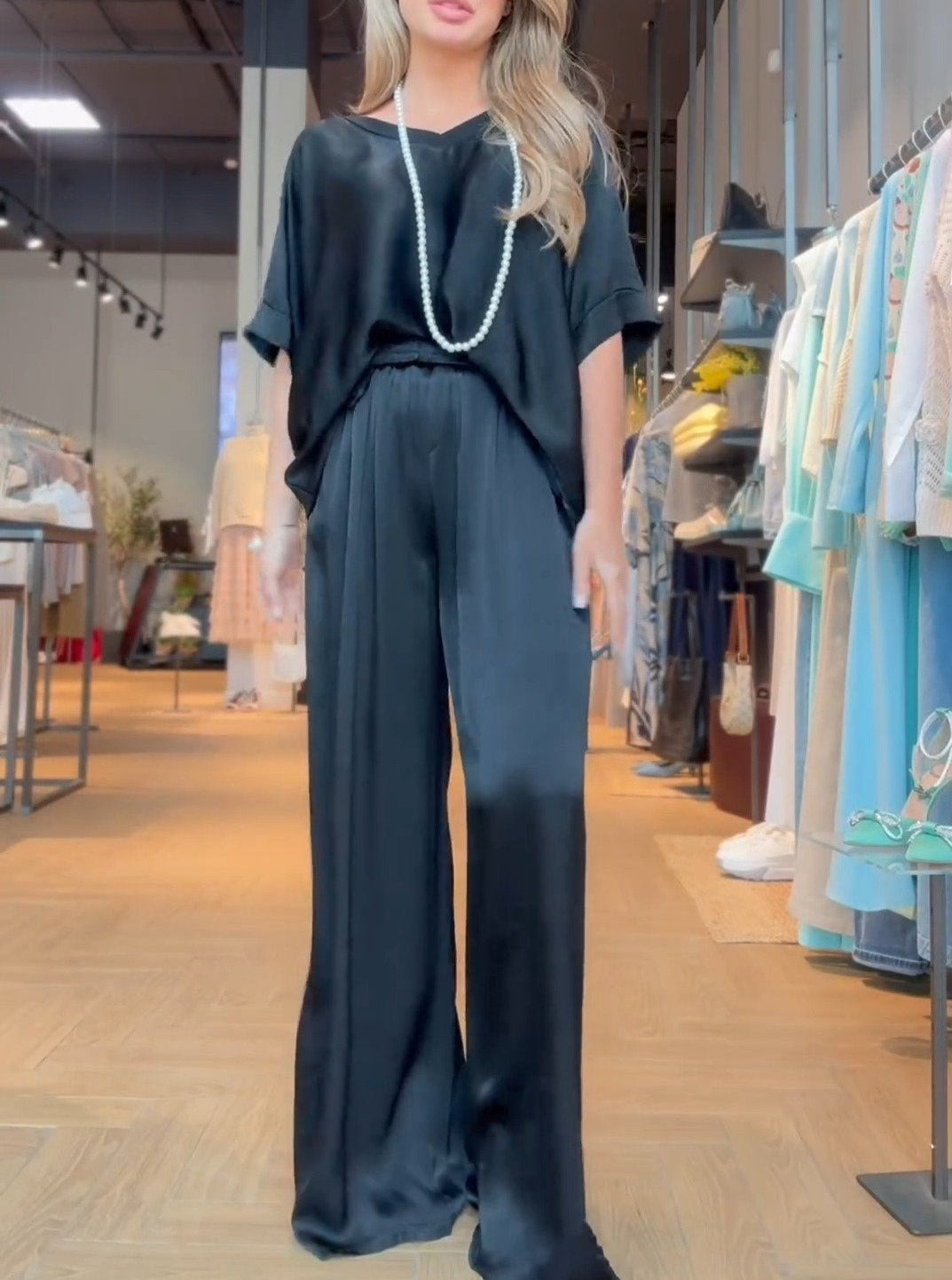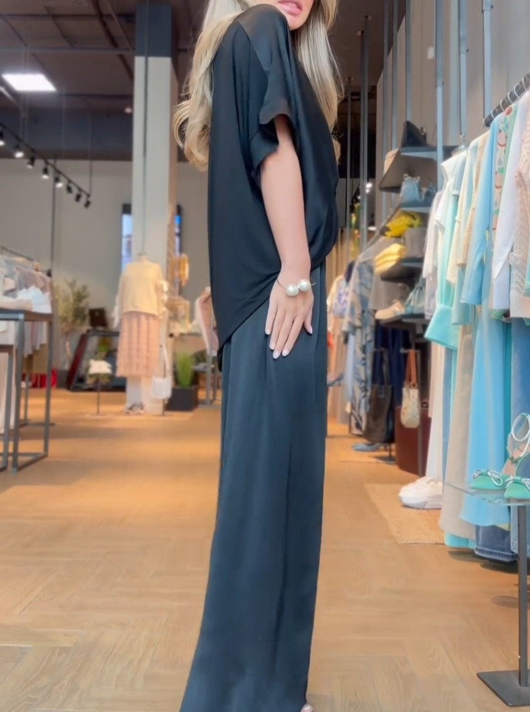 Indulge in ultimate comfort with our Oversized Short Sleeve Set! Made from smooth and luxurious fabric, this set will make you feel like you're lounging on a cloud. Say goodbye to uncomfortable clothing and hello to relaxation and style. Upgrade your loungewear collection with this must-have set today!