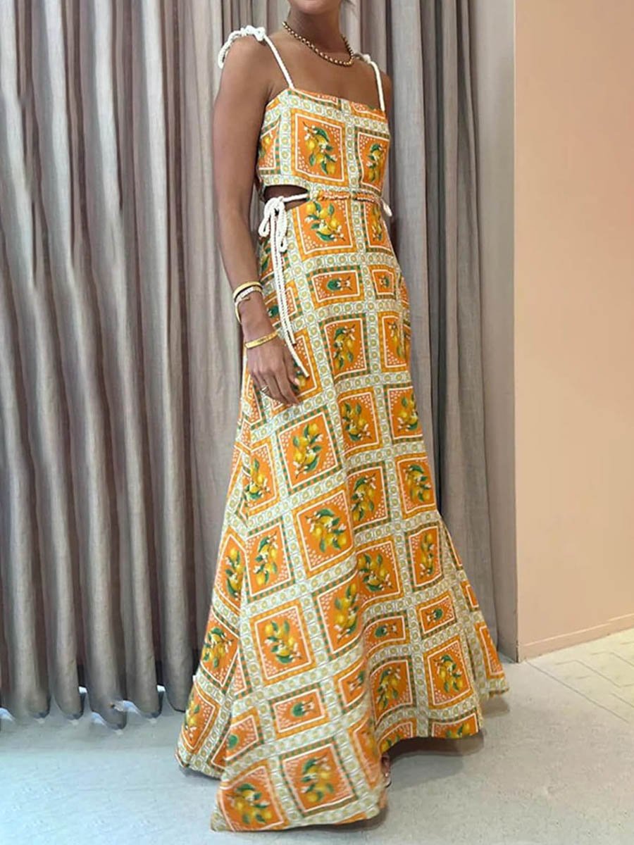 Falling softly to the floor, its Sicilian inspired Orange Patchwork print is a conversation starter that will have everybody talking at your upcoming garden party, wedding recovery and long lunch occasions.