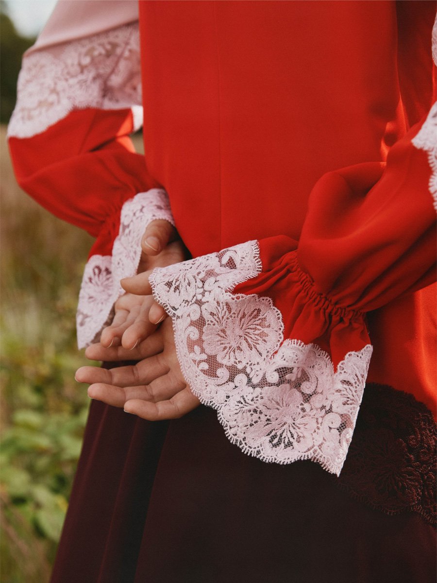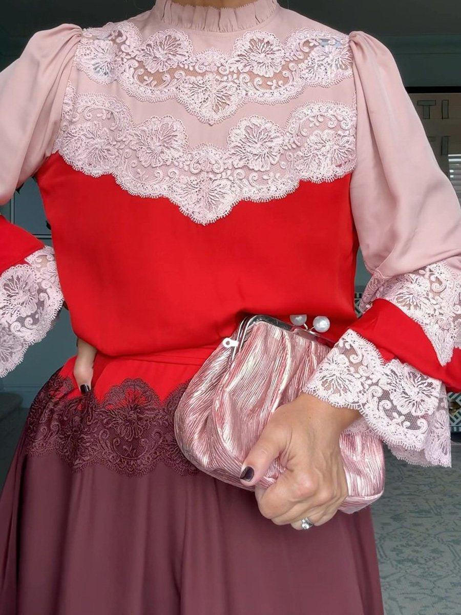 Silk Colour Block Lace Belted Maxi Dress